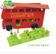 木妈妈高档儿童木制玩具车益智汽车模型公交车大红巴士双层大巴士
